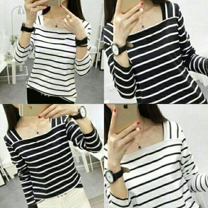 Baju Hitam Putih Wanita : Stripe T Shirt Kaos Garis Garis Hitam Putih Fesyen Wanita Pakaian Wanita Atasan Di Carousell